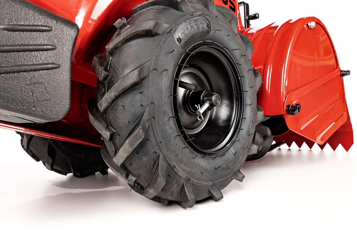 ✅ Napęd na koła – stabilizuje maszynę, amortyzuje siły przenoszone z noży, zmniejsza wysiłek operatora i pozwala na dokładne spulchnienie gleby już przy pierwszym przejeździe.