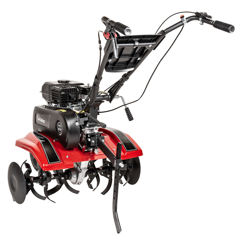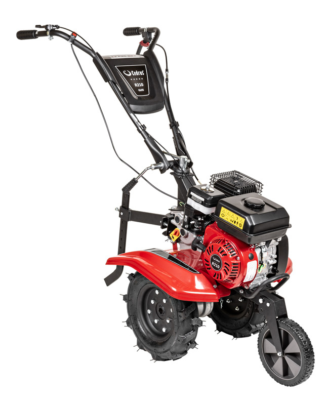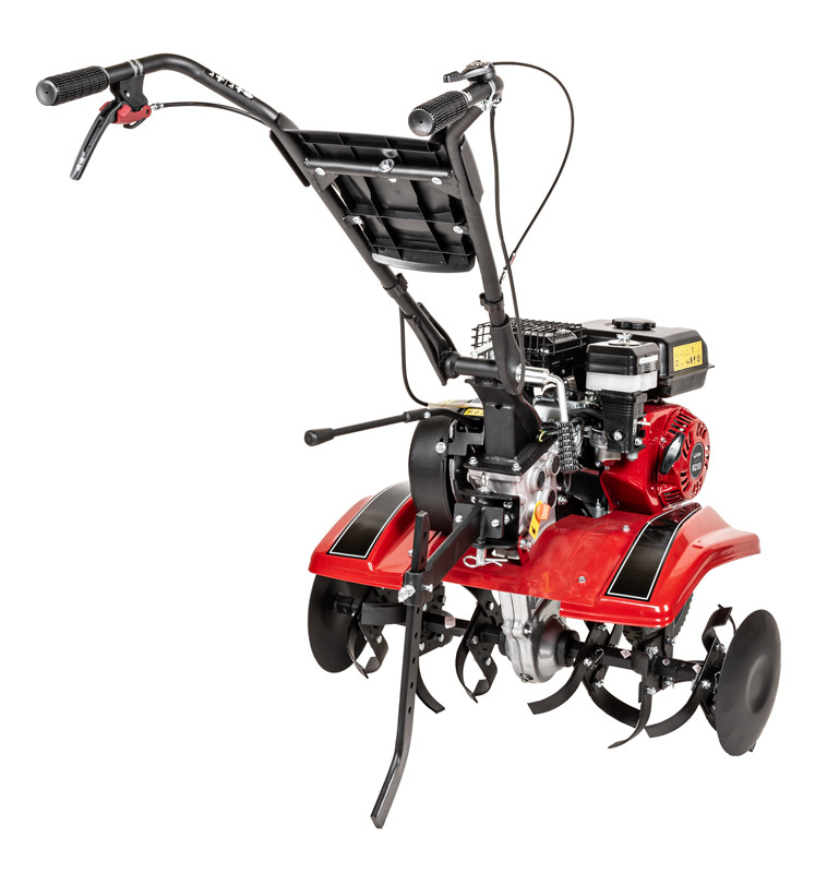 Wyposażona w silnik Rato R210 o pojemności 212 cm³ i mocy 7 KM, glebogryzarka jest odporna na intensywne użytkowanie i trudne warunki atmosferyczne. Żeliwna tuleja cylindra, czujnik oleju oraz łożyska kulkowe wału korbowego zapewniają długą żywotność i bezproblemową eksploatację.
