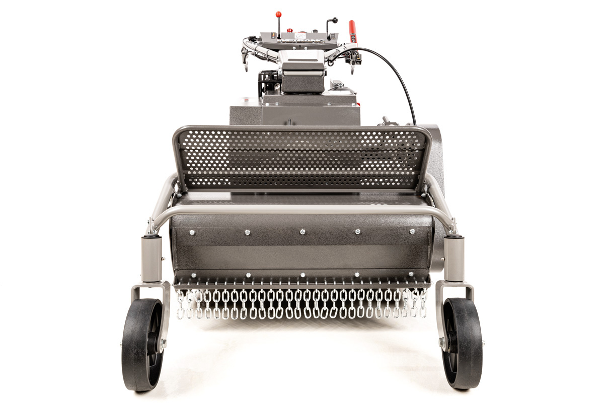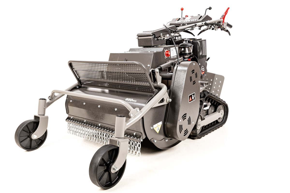 Szeroka głowica tnąca 680 mm z 38 ostrzami typu Y ze stali wysokiej wytrzymałości umożliwia szybkie i skuteczne koszenie wysokiej trawy, przerośniętej roślinności i mniejszych nalotów. Walec bijakowy z nożami młotkowymi pracuje pod solidną stalową osłoną, zapewniając bezpieczeństwo operatora i otoczenia, a funkcja mulczowania pozostawia za maszyną ściółkę, która szybko wysycha i gnije.