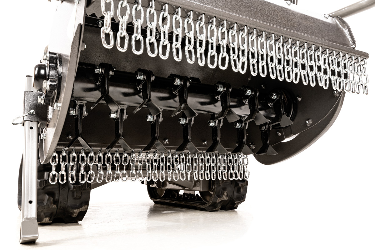Urządzenie wyposażone jest w niezawodny zespół tnący z 38 nożami w kształcie litery „Y”, ergonomiczne dźwignie sterujące, wzmocnioną skrzynię CVT oraz specjalnie wyważony wirnik zespołu tnącego z wzmocnionymi łożyskami, co zapewnia wysoką wydajność, odporność na wstrząsy i komfort pracy nawet przy długotrwałym użytkowaniu na dużych powierzchniach.