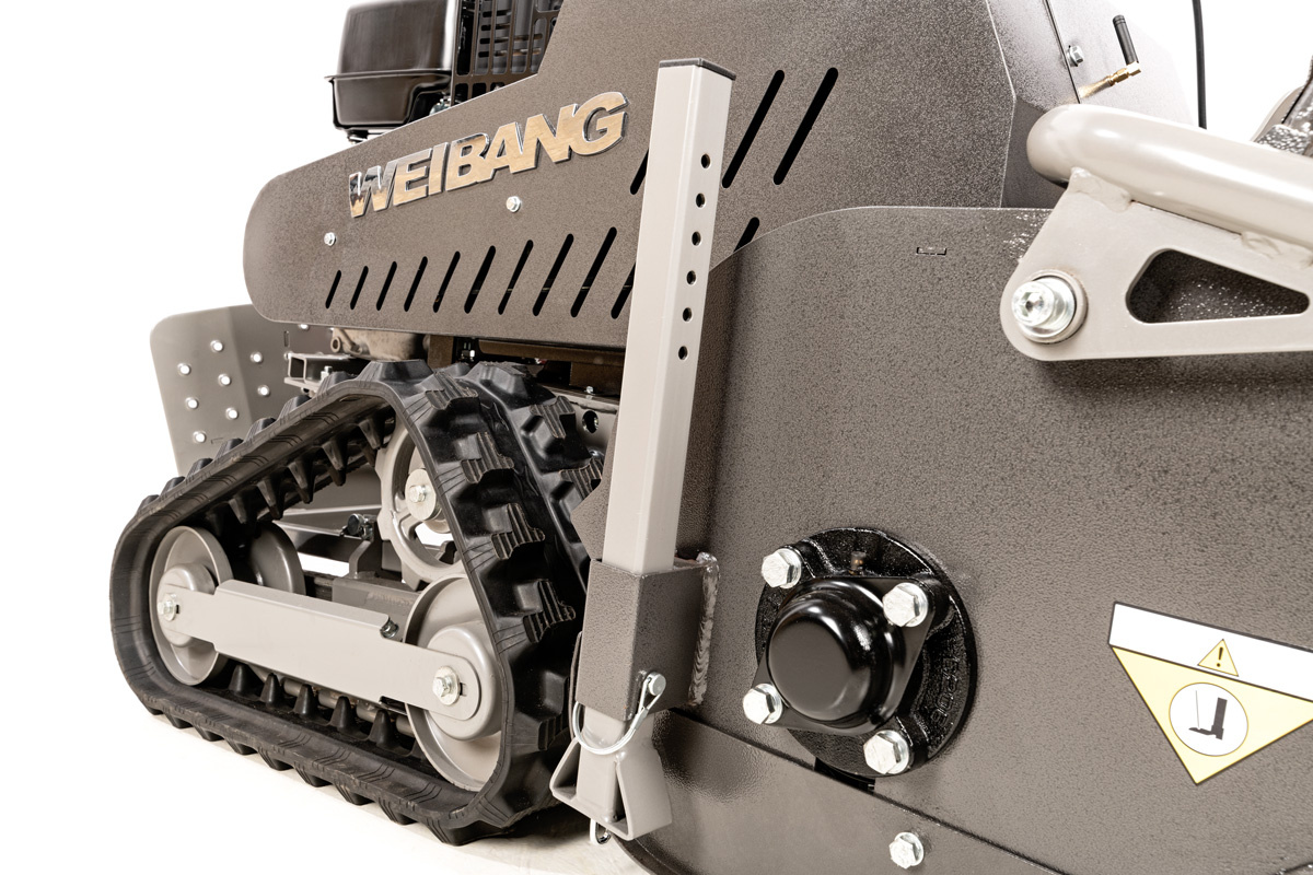 Kosiarka bijakowa Weibang WBGT6813 wyposażona jest w zespół tnący z 38 elementami w kształcie litery „Y”, zapewniający wysoką jakość cięcia. Blokowane przednie koła umożliwiają utrzymanie dokładnej linii cięcia, nawet na stromym terenie.