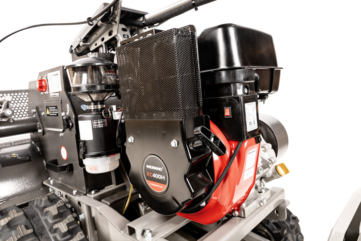 Kosiarka bijakowa Weibang WBGT6813 wyposażona jest w 9-konny silnik benzynowy Brilliant GT1300PE o pojemności 392 cm³ z cylindrycznym filtrem powietrza i dużym filtrem chłodzonym powietrzem, który radzi sobie w trudnych warunkach. Urządzenie posiada najnowszą bezstopniową przekładnię Weibang CVT, napęd 2WD oraz regulowaną prędkość jazdy, co zapewnia płynną i efektywną pracę na dużych powierzchniach.