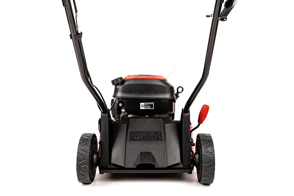 - Kompaktowa kosiarka spalinowa z napędem, silnikiem 4,2 KM i stalowym nożem 42 cm – wygodna, precyzyjna i gotowa na każdy trawnik.
