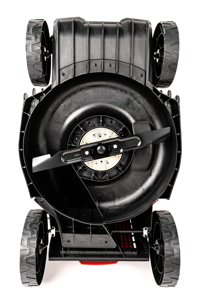 Duże tylne koła dla wygodnego prowadzenia kosiarki