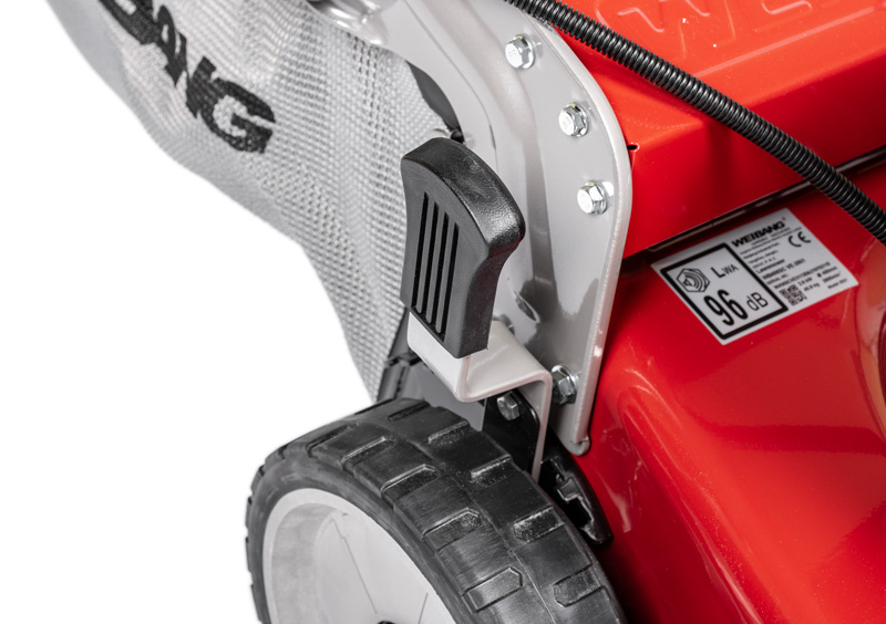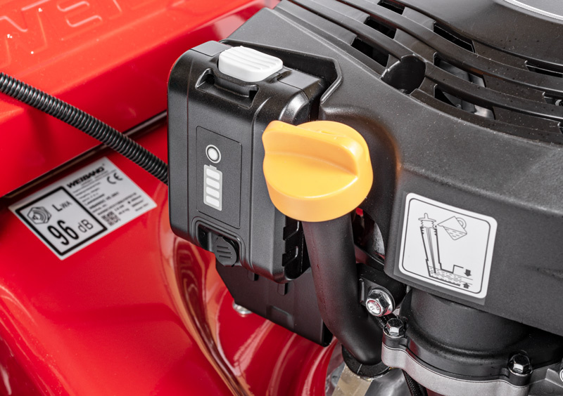 Kosiarka spalinowa Weibang WB456SC VE 3IN1 wyposażona jest w silnik Loncin 2,5 kW o pojemności 166 cm³. Uruchamianie jest dziecinnie proste dzięki elektrycznemu rozruchowi – wystarczy nacisnąć czerwony przycisk na uchwycie.