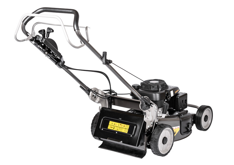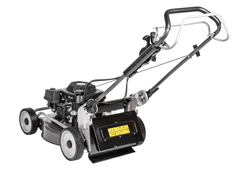 Wysokość koszenia można precyzyjnie dopasować dzięki 10-stopniowej regulacji, a specjalnie profilowany nóż i konstrukcja obudowy bez paska i osłony gwarantują skuteczne zbieranie trawy.