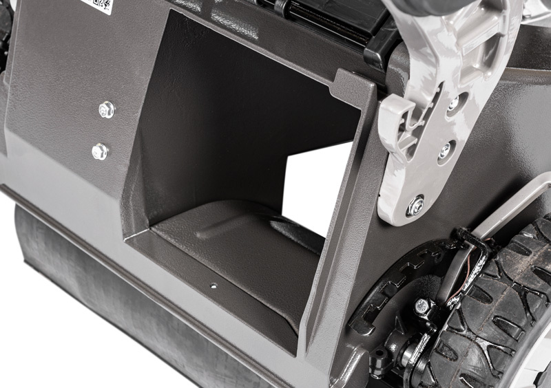 Dodatkowo system szybkiego składania uchwytu ułatwia transport i przechowywanie kosiarki. Wersja konsumencka objęta jest 5-letnią gwarancją, co potwierdza wysoką jakość i niezawodność urządzenia.