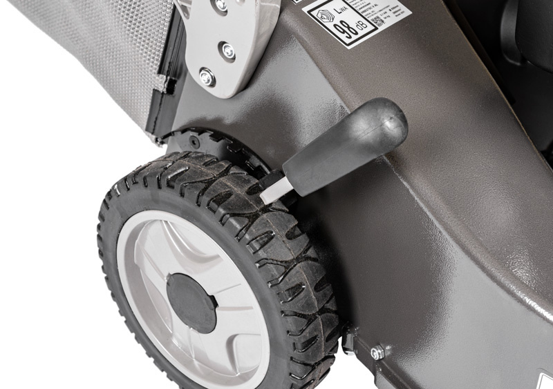 Łatwa regulacja wysokości koszenia – praktyczna dźwignia umożliwia szybką zmianę ustawień roboczych.