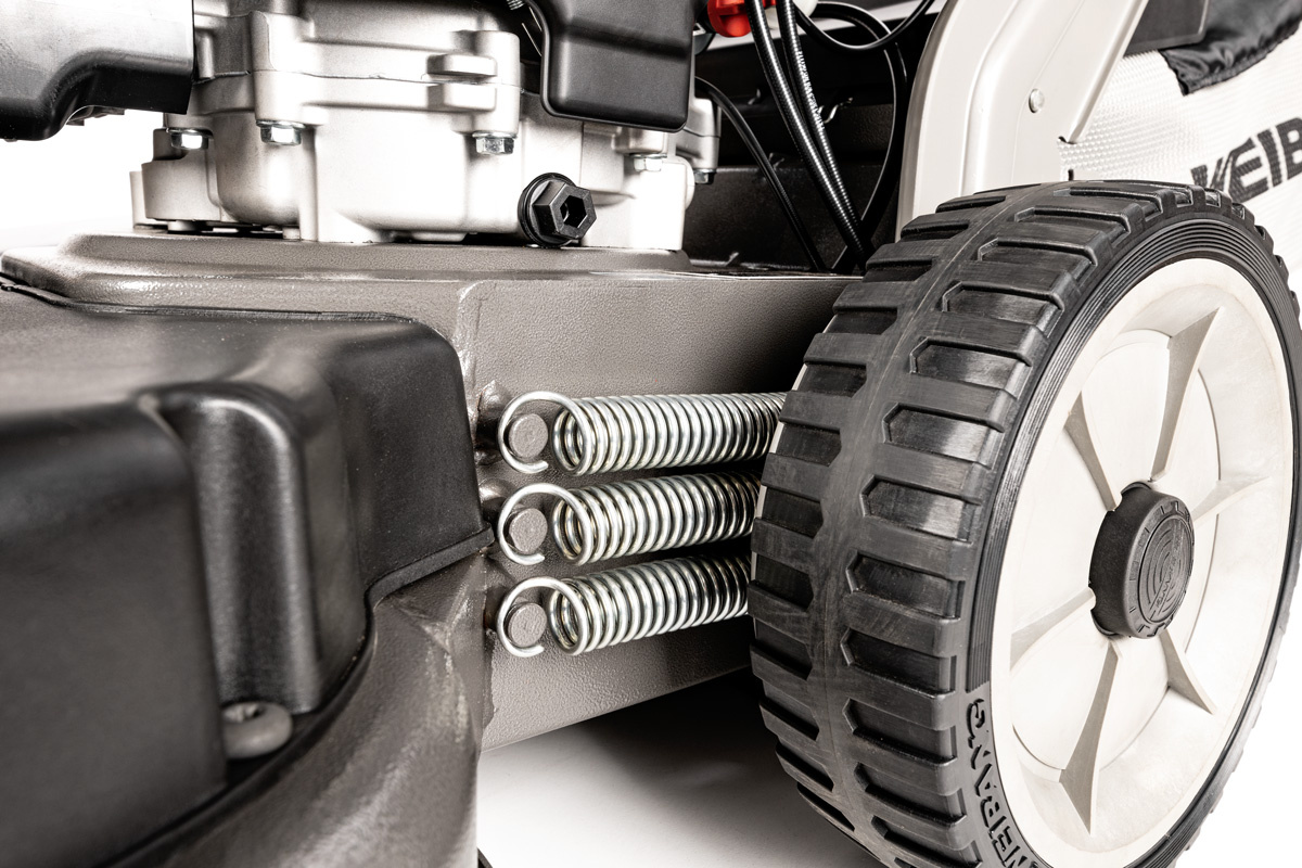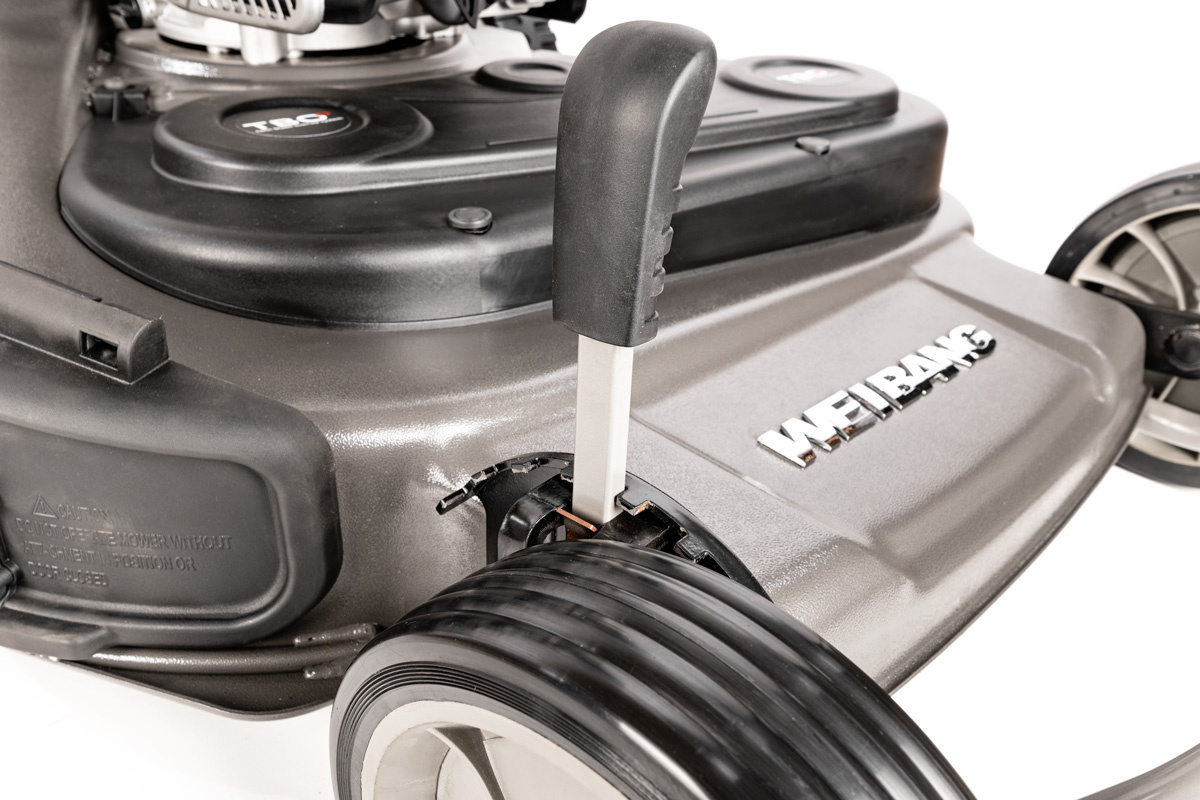 Model WEIBANG WB778SLC został wyposażony w innowacyjny system koszenia z dwoma nożami tnącymi, które zapewniają wyjątkową skuteczność w koszeniu i mieleniu trawy. Dodatkowo zastosowane sprzęgło noży gwarantuje pełne bezpieczeństwo pracy oraz wysoką trwałość jednostki napędowej.
