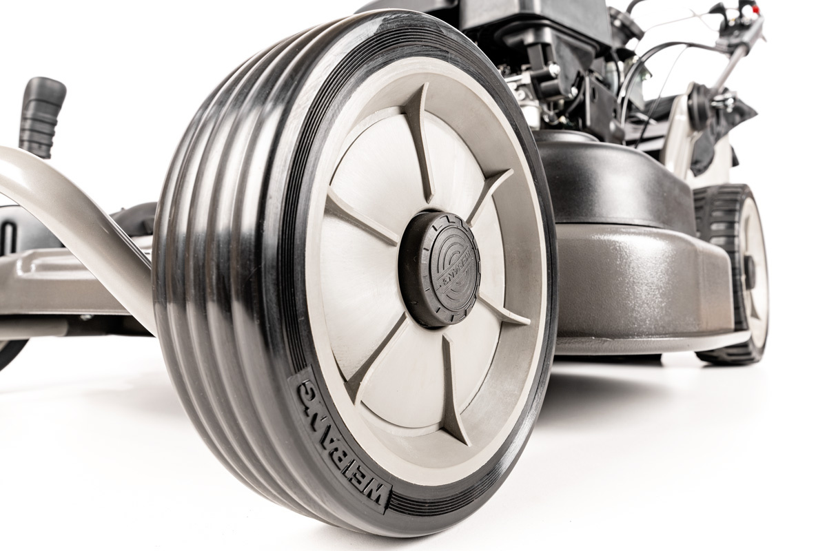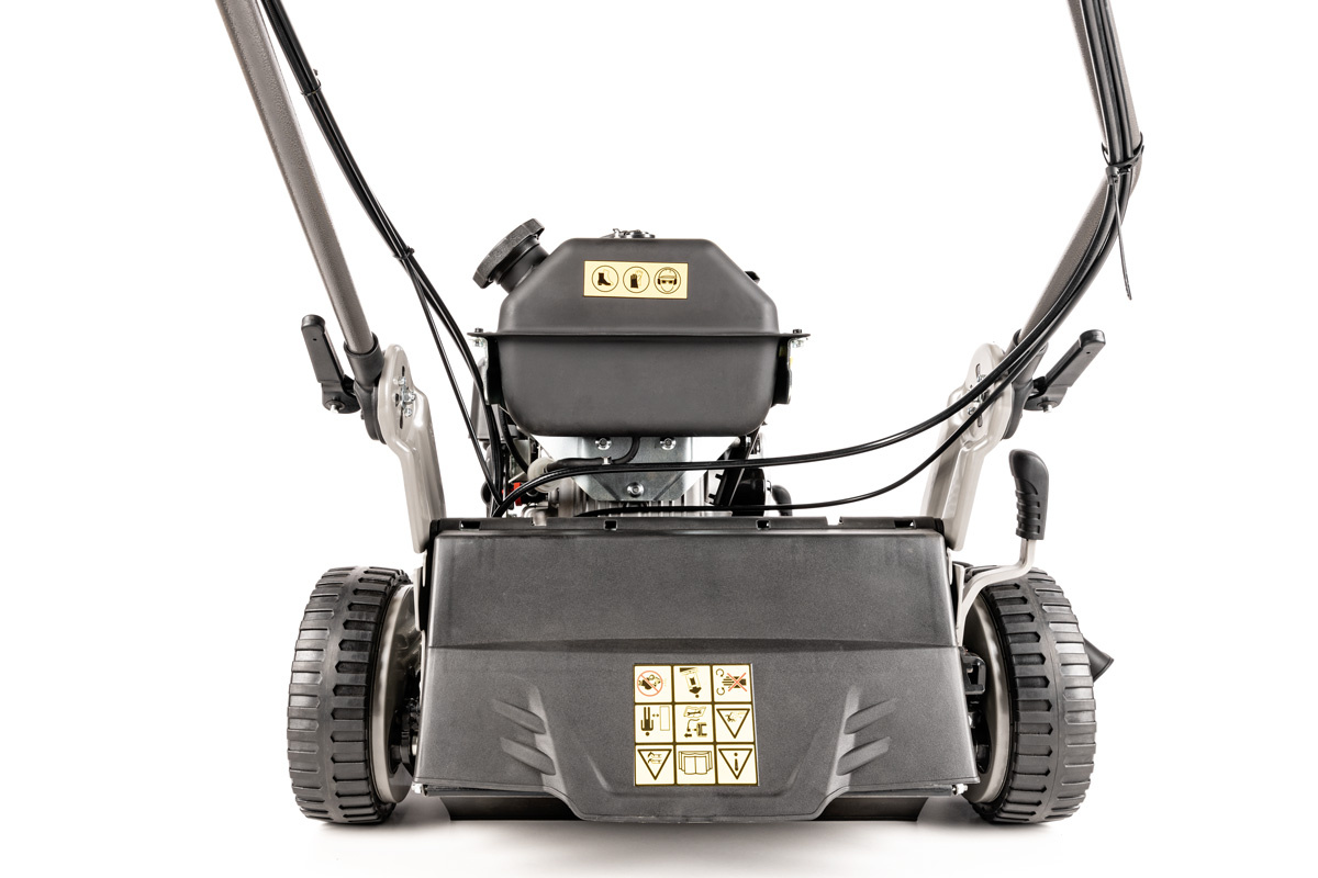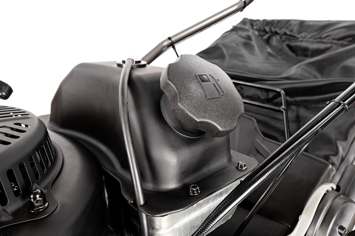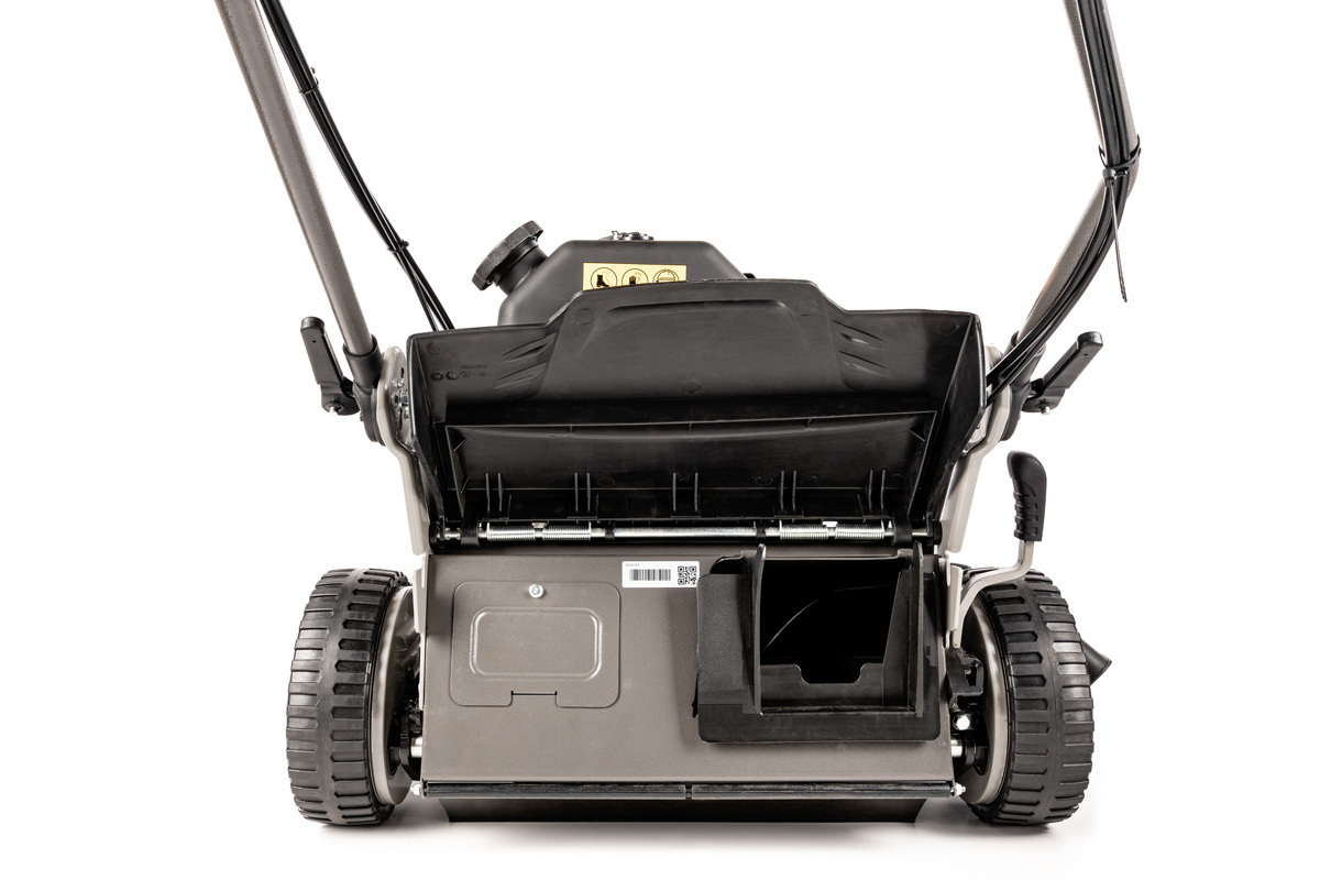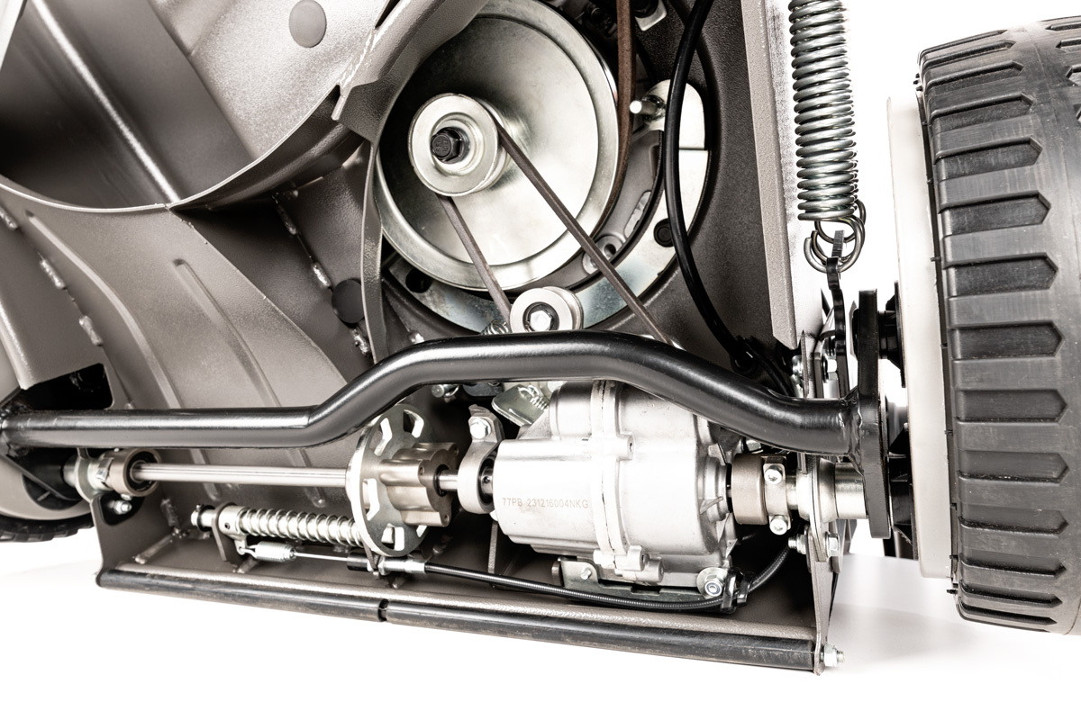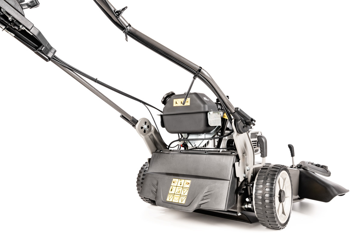 Dodatkowe zalety to sprzęgło noża, hamulec postojowy oraz pojemny kosz 90 l, który minimalizuje przerwy na opróżnianie i zapewnia wygodę podczas koszenia.