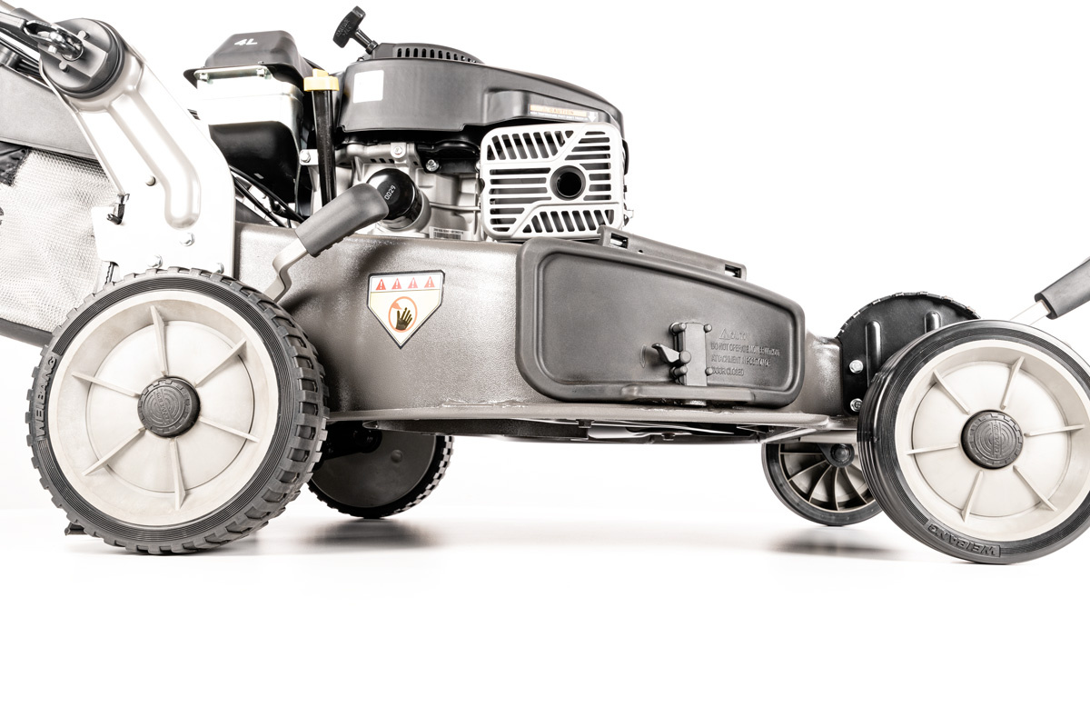 Kosiarka WEIBANG WB778SLC to profesjonalny model o dużej szerokości roboczej z funkcją 3 w 1: zbierania trawy, wyrzutu bocznego i mulczowania. Wyposażona w dwa noże o różnej wielkości oraz aerodynamiczną rynnę wiatrową, gwarantuje doskonały efekt zbierania lub mulczowania.